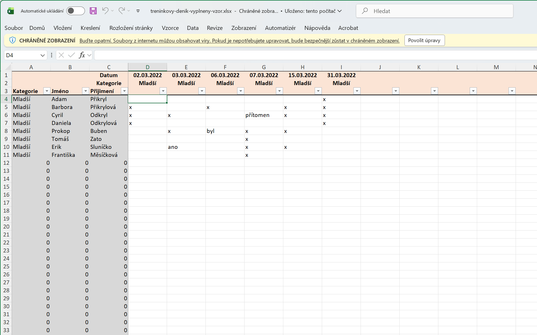 V mnoha sborech a sportovních oddílech se dnes tréninkový deník vede pomocí tabulek v Excelu.